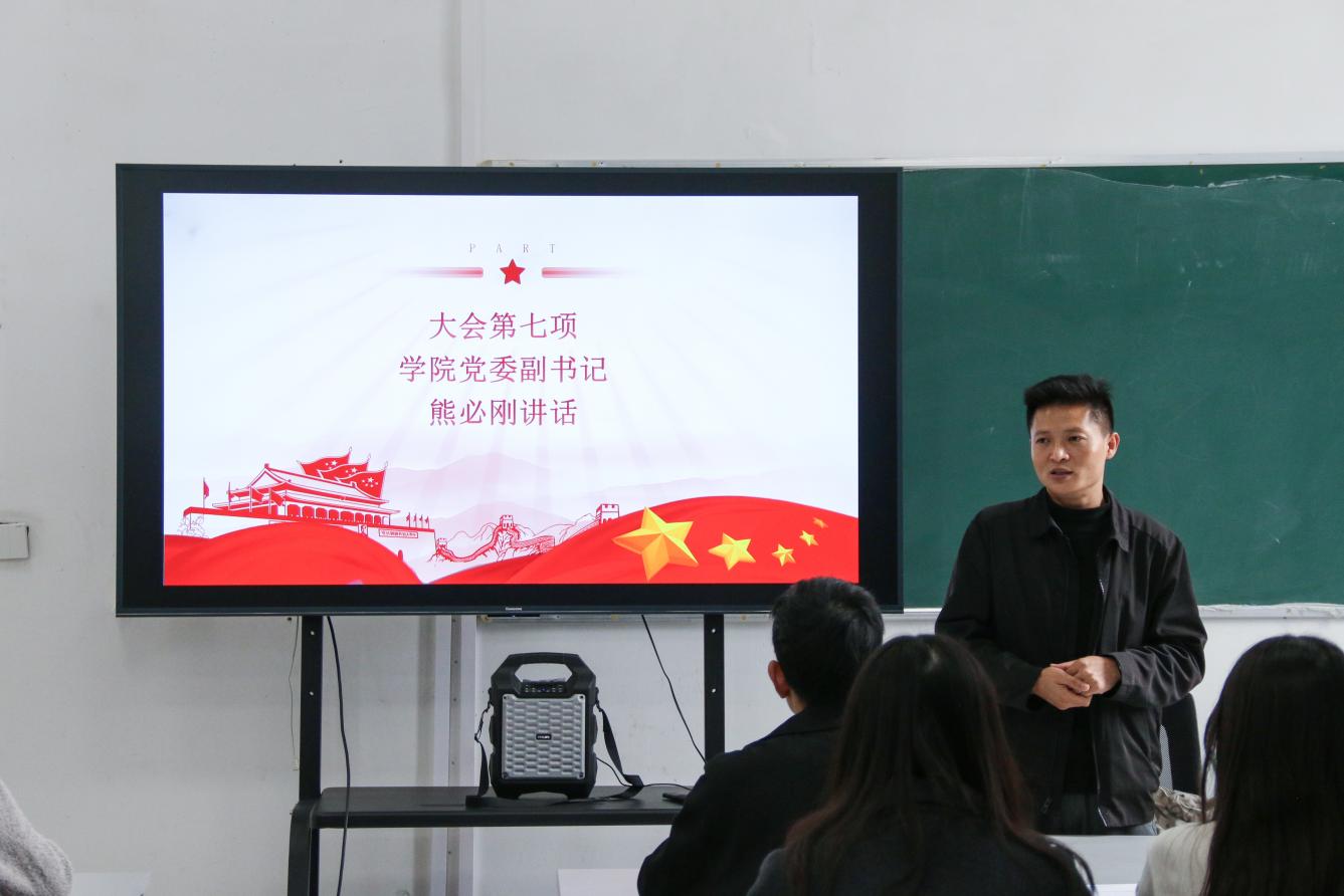 大会最后,熊必刚代表学院党委,对第五届党务工作站的辛勤付出表示衷心感谢,并对新一届干部成员的当选表示热烈祝贺。“过去一年,第五届党务工作站以高度的责任感和使命感,扎实推进各项工作:在党员培训方面,协助审核材料,确保程序规范; 在组织生活创新方面,参与系列主题党日活动的组织服务,增强了支部凝聚力;在基础党务建设方面,协助完善档案管理,提升工作效能。这些成绩的取得,是全体成员务实奉献的结果,值得肯定。”并对新一届党务工作站工作提出三点期望:“一是强化规范意识,党务工作需以制度为纲,以细节为要。发展党员材料审核、党费收缴、组织关系转接等基础工作,必须做到“零差错”“零疏漏”,确保每项流程经得起检验。二是守提升服务效能,创新应立足实际、务求实效。挖掘专业与党建的结合点,形成可推广的经验。 三是发挥先锋模范作用。党务工作者既是组织者,更是践行者。要以服务为本,真正让党务工作成为连接师生、推动发展的桥梁,努为学院党建工作高质量发展作出新的贡献。”