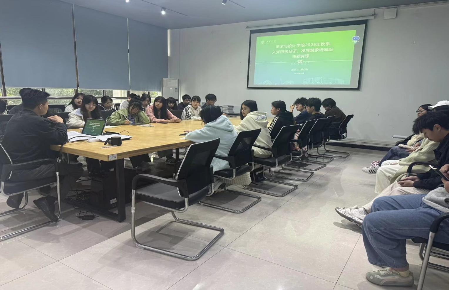 10月20日中午,美术与设计学院党委副书记熊必刚以“如何成为一名优秀的学生党员”为题,在7C-202会议室给2025年秋季学期党校入党积极分子、发展对象讲授专题党课。