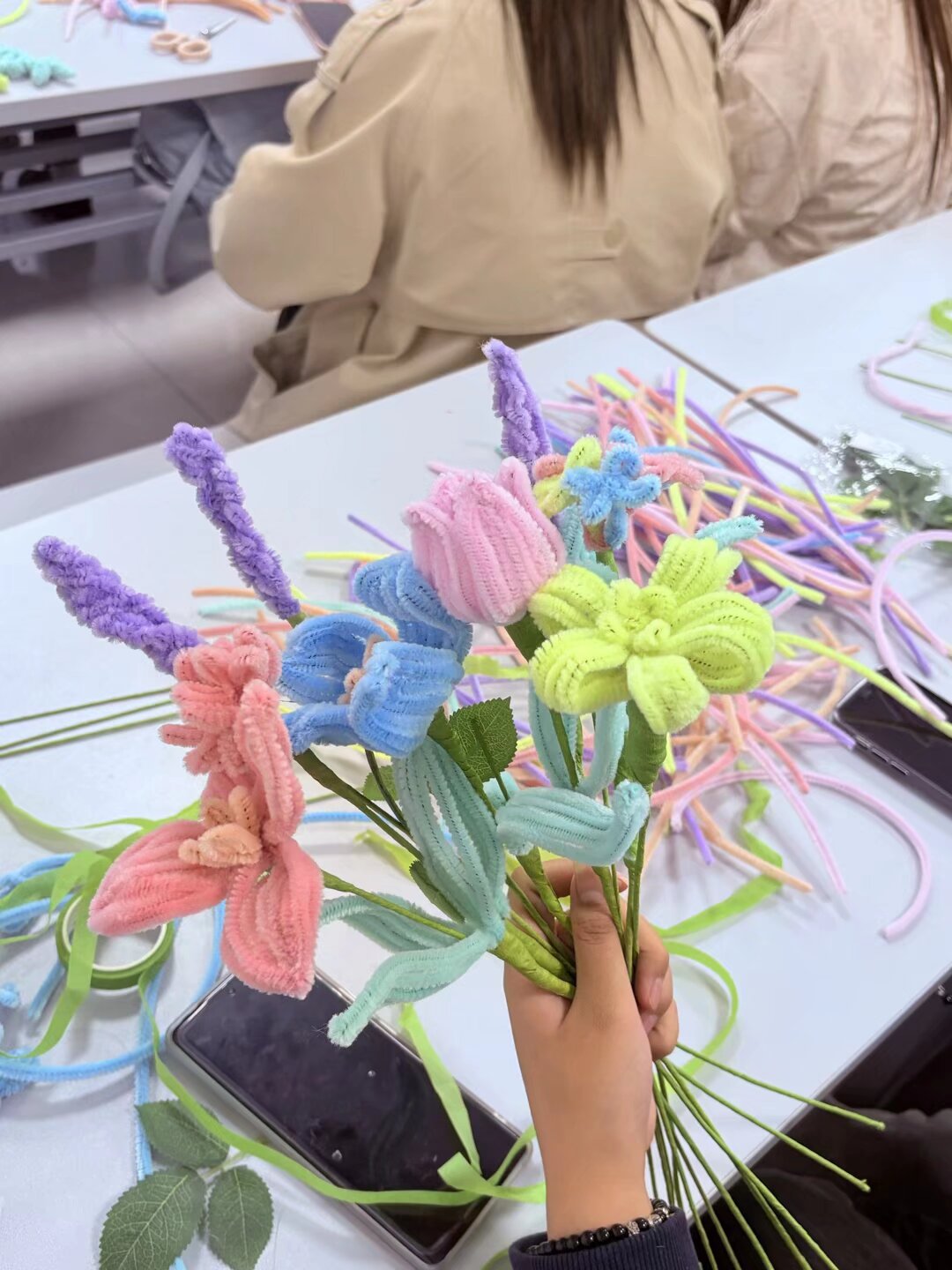本次活动不仅为参与者提供了一个减压放松的好途径,还传递了一个积极的理念是关怀心理健康。在指尖的方寸之间,在扭扭棒的弯曲折叠中,压力在悄然溜走,快乐在创造中自然浮现。这次活动也告诉我们生活不必总是循规蹈矩,有时也要像扭扭棒一样,保持柔韧,允许一切发生,才能在弯曲的道路上,塑造出属于自己的独特风景。未来,美术与设计学院生活权益部也会将此类活动常态化,让更多大学生在忙碌的学习和生活中,找到一方可以安放情绪,滋养心灵的净土。