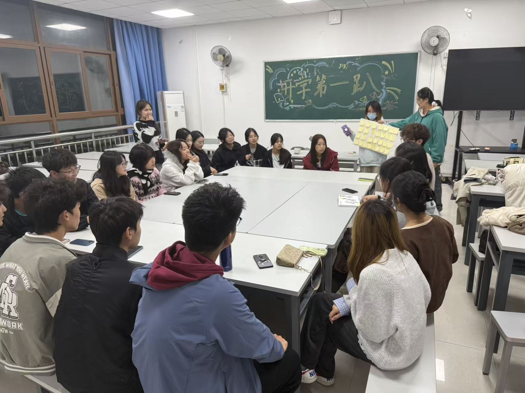 晚上7点,活动正式拉开帷幕,主持人张博慧以热情洋溢的开场白点燃现场氛围。“没有点名与测验,今晚只有快乐与陪伴!”她的话语瞬间拉近了同学间的距离,让原本略带羞涩的教室逐渐充满欢声笑语,也让“把‘同学’升级为‘伙伴’”的活动初衷,成为在场每一位同学的共同期待。