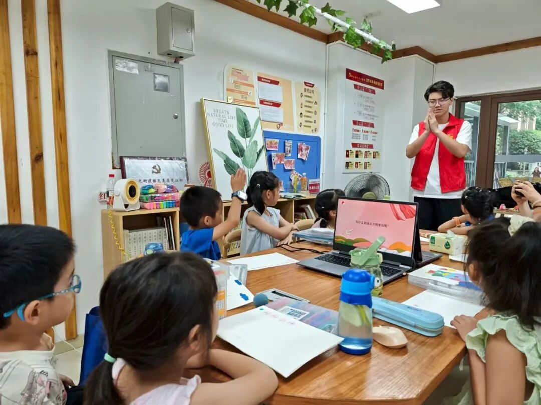 团队以“童心向美生”为主线,设计四阶创意课程,让孩子们在创作中感受美、表达美。志愿者手把手教孩子们制作立体衍纸画,沉默的孩子主动分享“我的小鸟想飞回稻田”。孩子们用画笔在草帽上记录麦浪、云霞,朴素草帽成了“移动画廊”。 志愿者借漆扇制作讲解水油分离原理,孩子们看着浮墨变山水,成就感满满。 在“我的梦想”创作中,曾不敢发言的孩子画出“带奶奶看病的医生”,勇敢讲述心愿。结课展上,孩子们挺胸介绍作品,眼中闪烁自信光芒——他们不仅掌握技艺,更明白自己是“美”的创造者。