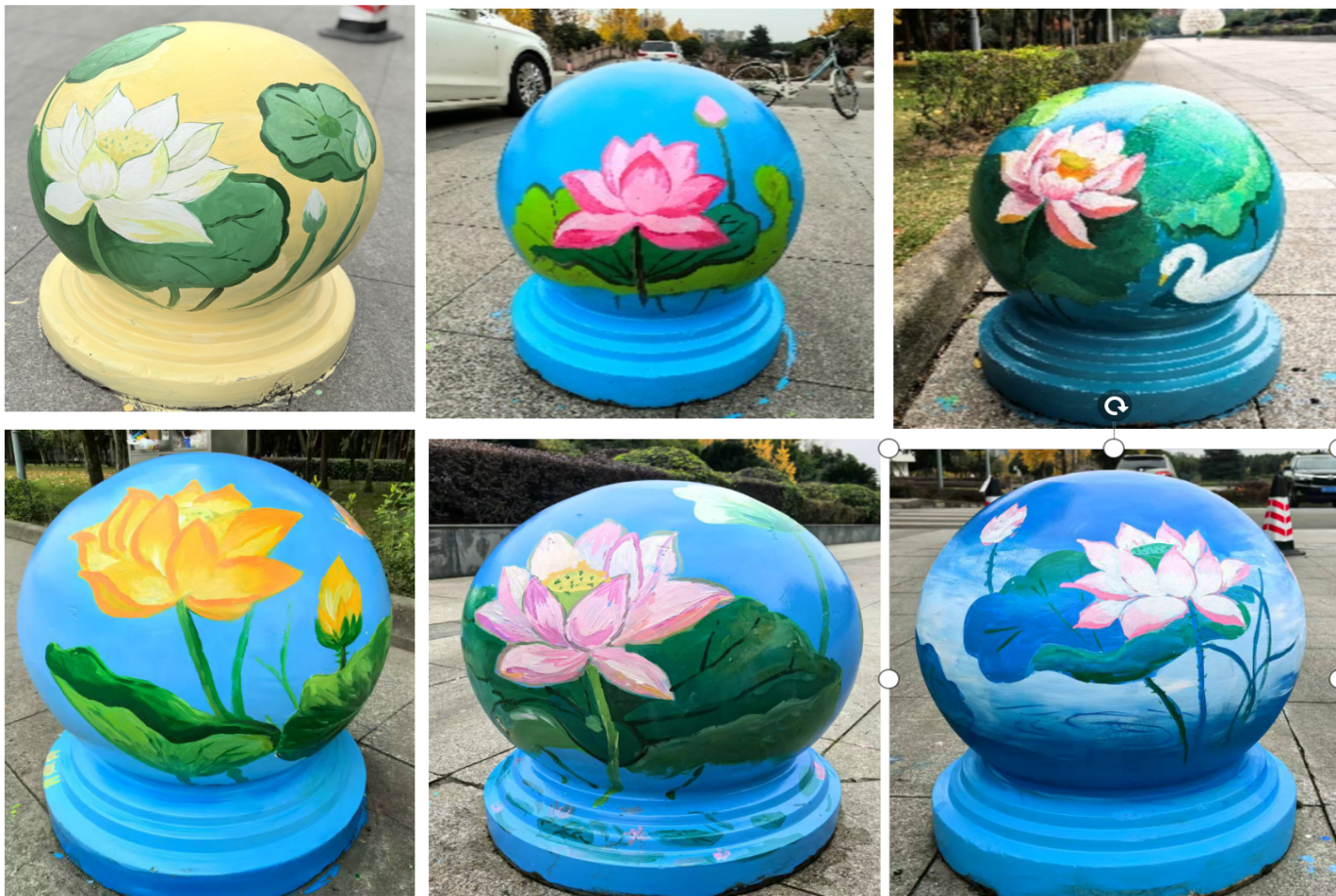 如今,漫步在校园中的马尔代夫湖,一个个绘有荷韵图案的石墩错落分布,或立于路口引导方向,或依于步道点缀风景,既保留了石墩安全防护的实用功能,更成为校园里一道独特的“移动风景线”。清雅荷韵浸润书香校园,创意彩绘点亮青春岁月,这些承载着师生心意的石墩,正以无声的艺术语言,诉说着校园的活力与温情。