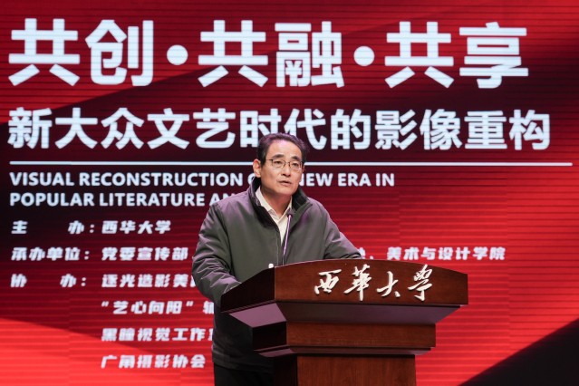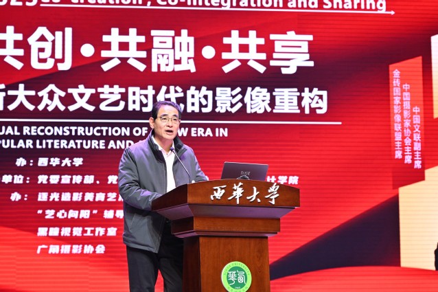 12月15日,中国文联副主席、中国摄影家协会主席、金砖国家影像联盟主席李舸走进西华大学,与师生面对面交流,围绕新大众文艺时代影像艺术的发展方向,作题为《共创·共融·共享——新大众文艺时代的影像重构》的专题讲座。学校党委常委、副校长费凌主持讲座,全校近600名师生到场聆听。