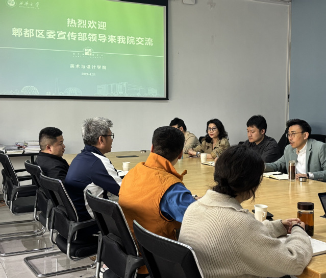 郫都区委宣传部李君副部长对前期展陈方案整体框架给予了肯定,同时就方案细节提出具体修改建议,同时,李君副部长对美术与设计学院给予本次活动的大力支持表示感谢,要求各方加快方案完善细化进度,推动活动有序推进,力争将本次展览打造成具有影响力的特色品牌活动,为双方后续长期合作筑牢基础。