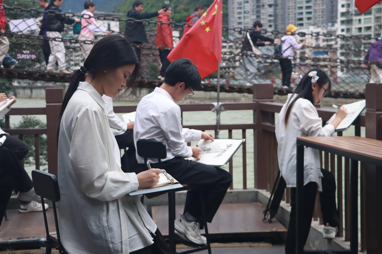 此次活动以“艺术+党史”的创新模式,实现了革命传统教育与专业实践的深度融合。师生们在泸定桥的实地体验中,将“信念坚定、勇往直前”的泸定桥精神内化为精神坐标——美术专业学生通过速写创作捕捉铁索桥的历史肌理,设计类师生以现代视觉语言展现红色符号,在专业实践中诠释革命精神。大家纷纷表示,要将这种精神力量转化为攻坚克难的行动自觉,在学术创新与社会服务中展现新时代青年的使命担当。