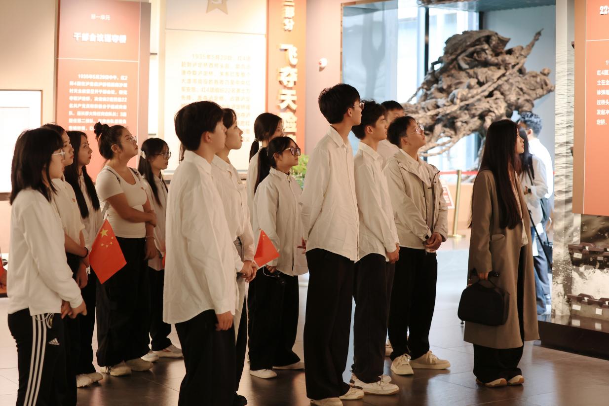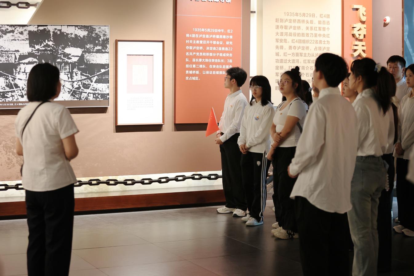 在红军飞夺泸定桥纪念馆,“这十三根铁索不仅是物理连接,更是历史与当下的精神纽带,承载着共产党人的初心使命。”讲解员杨菲菲通过珍贵文物、历史影像和互动展陈,生动还原了这场长征关键战役。使师生全面了解了飞夺泸定桥这一长征中关键一役的惊心动魄,深刻感悟到红军将士不畏艰险、勇往直前、不怕牺牲的革命精神。
